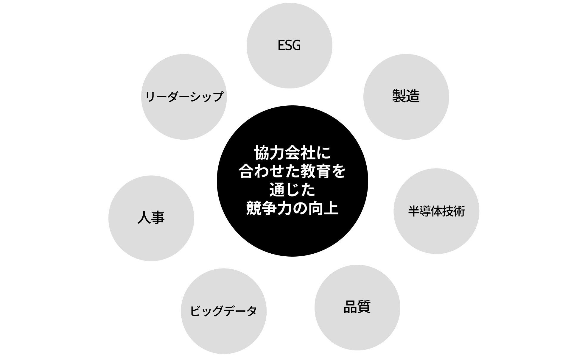 これらの価値観を実践する一環として、共生協力アカデミーや半導体製造技術アカデミー(SfTA)などのプログラムを通じ、協力会社に高品質な研修を無償で提供してきました。