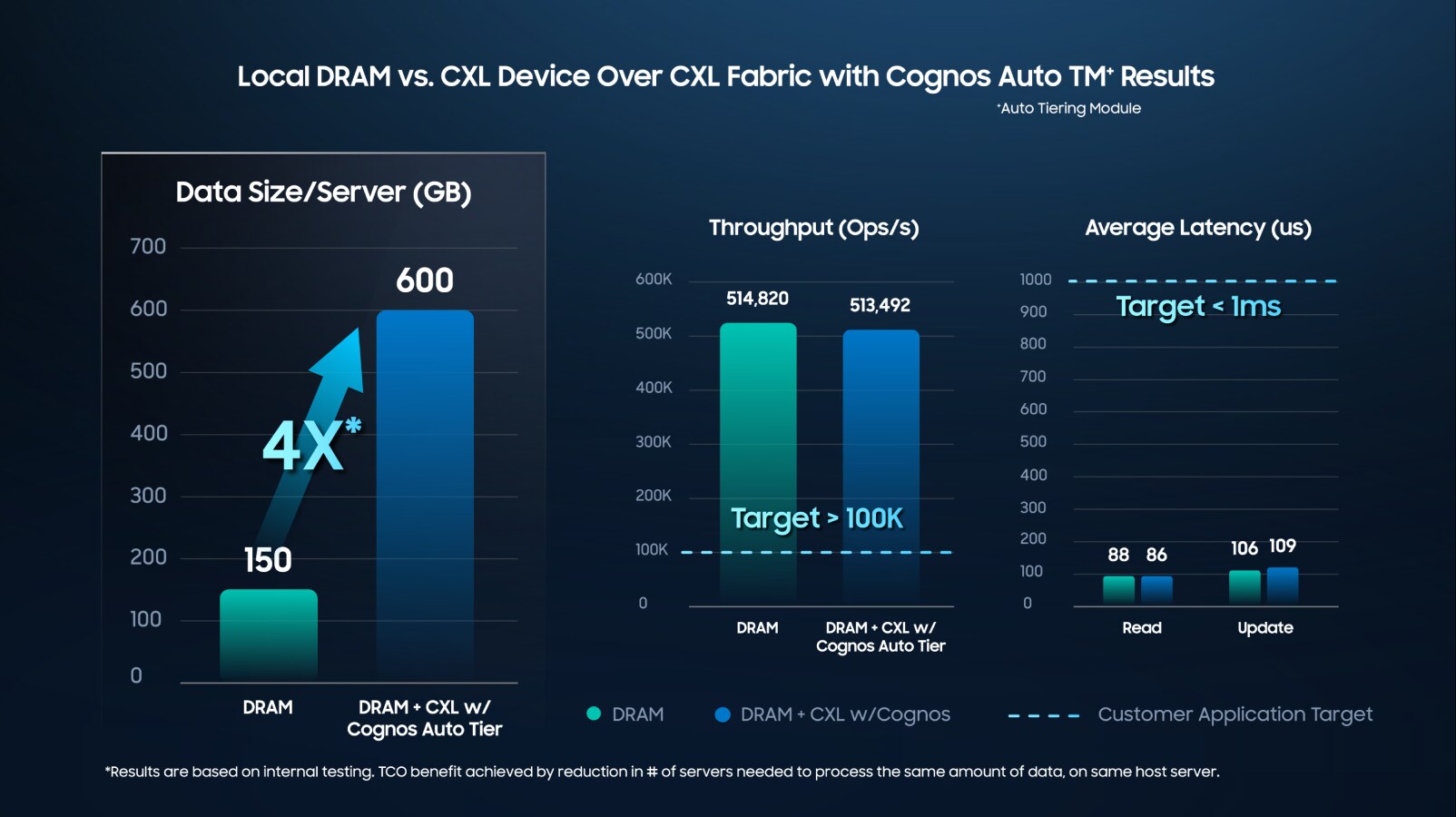 실제 운영 환경에서 Cognos와 CXL을 도입함으로써, 애플리케이션 사용자는 SLA의 지연시간(latency)과 처리량(throughput) 목표를 충족하는 동시에 TCO를 4배 개선할 수 있었습니다.