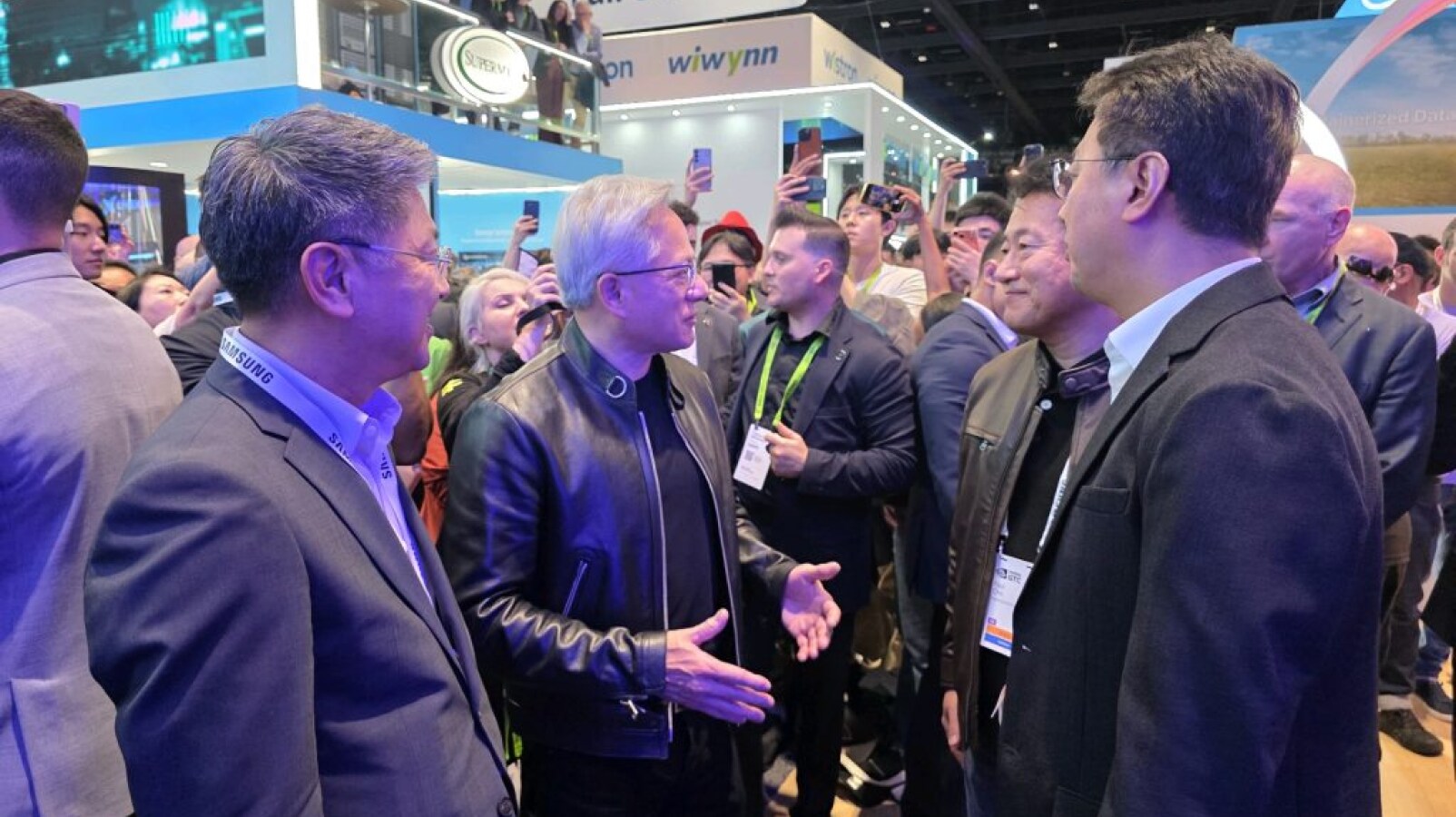 From the left: SangJoon Hwang, EVP of Memory Product & Technology at Samsung Electronics, Jensen Huang, CEO of NVIDIA,